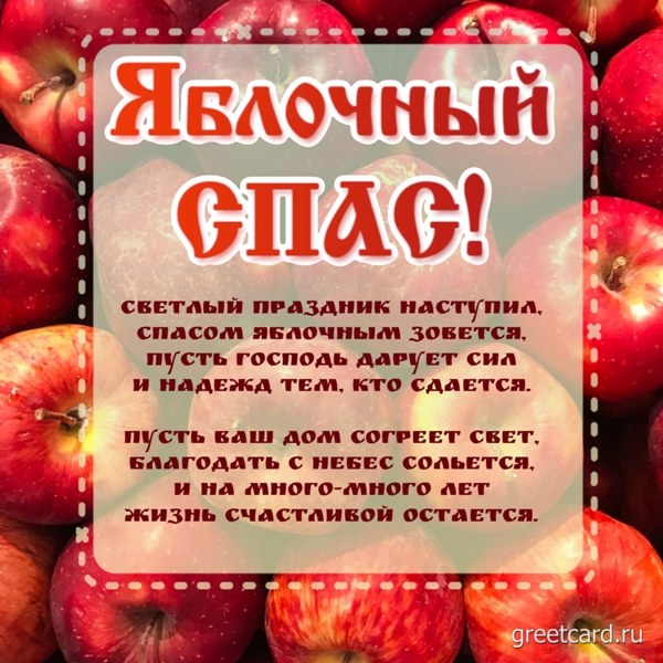 Картинки и открытки с праздником "Яблочный спас" помогут вам поздравить родных и близких. Яблочный Спас каждый год отмечают 19 августа, и совпадает он с православным праздником Преображения Господня.