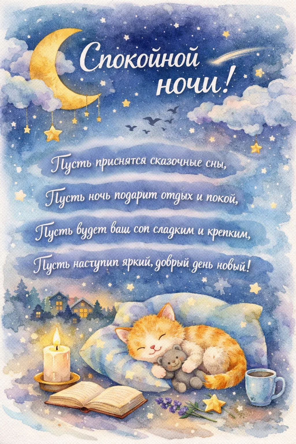 Пожелать спокойной ночи или с отпуском картинкой